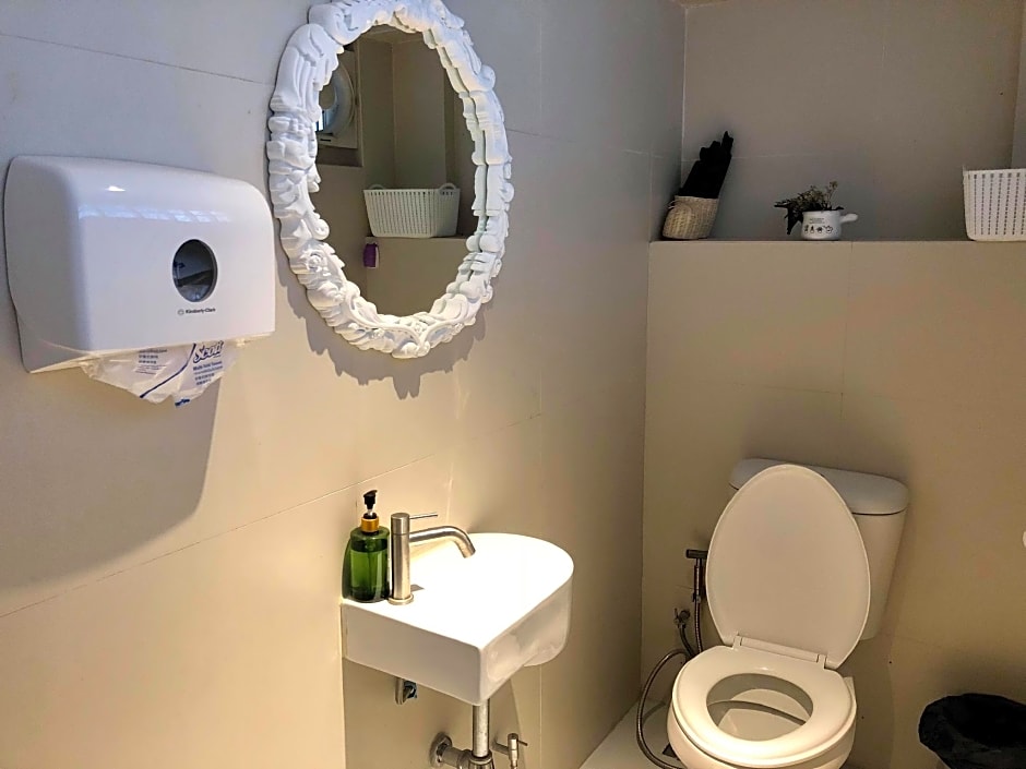 The dormitory room features air conditioning, a tea and coffee maker, as well as a shared bathroom boasting a shower and a bidet. There is a seating area, a dining area and an outdoor dining area and complimentary chocolate is available for guests. The unit has 1 bed.
